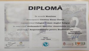 In luna noiembrie 2022 elevii scolii noastre au participat la Concursul de grafică ”Ambasadorii Speciilor Amenințate”
